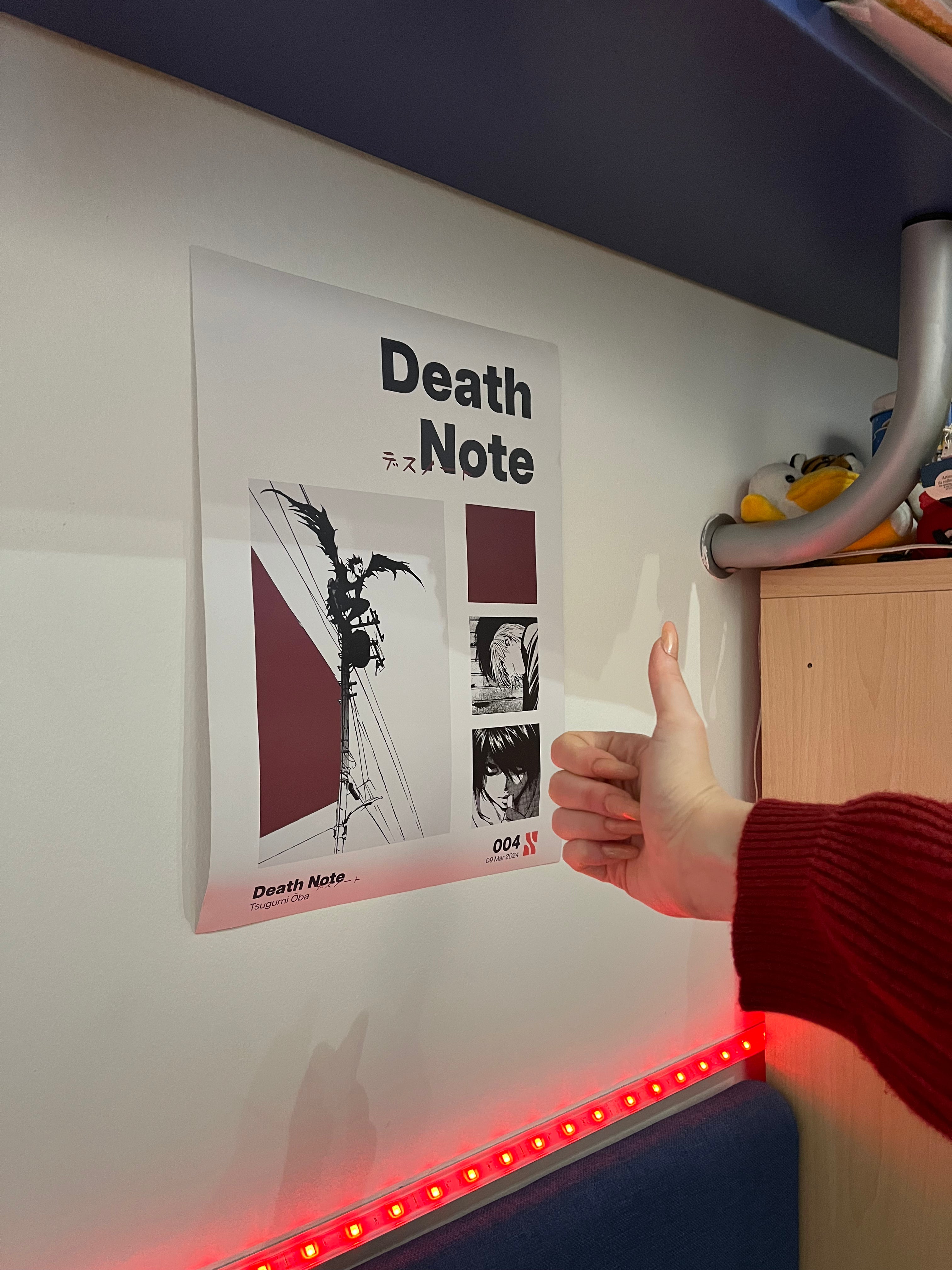 Ho ordinato il poster di Death Note per mio fratello (è il nostro anime preferito) e in camera sua sta benissimo!